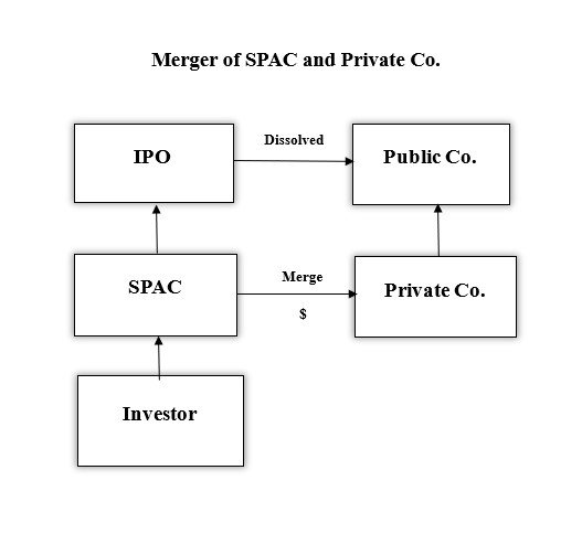 The merger of a SPAC with a private company to form a public company is depicted below.